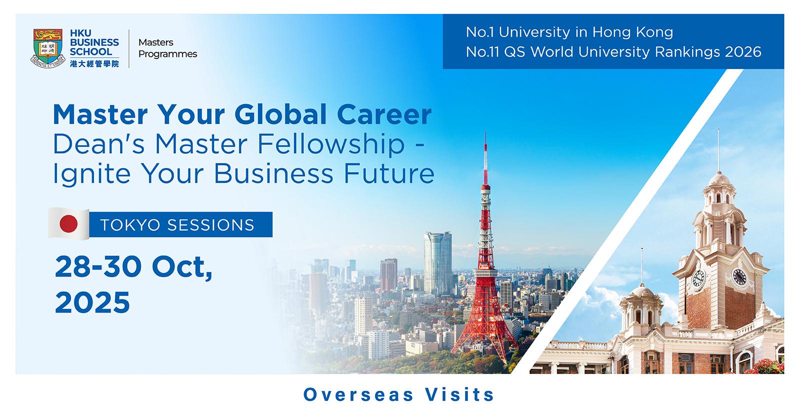 Welcome to join the upcoming HKU Business School Masters Programmes Information Session in Tokyo! Come explore the wide range of programmes, get personalized advice and discover the perfect one for you!