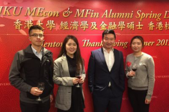 Mentee: Alex LI (First from the left)The mentorship programme not only allows me to have a close contact with professionals in finance industry and broaden my social network, but also helps me plan my career path. I really appreciate this programme and my mentor.